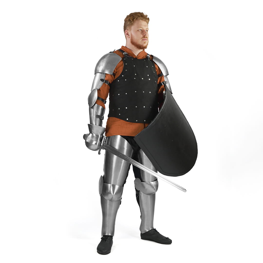 Measurements for armor should be taken over gambeson you will later use. If you want to order everything at once (padded clothes, armor, boots etc.) we can split the shipment of your order into two parts - first with the clothing so that you can take all the necessary measurements for the armor, and the second with the armor when it is ready.