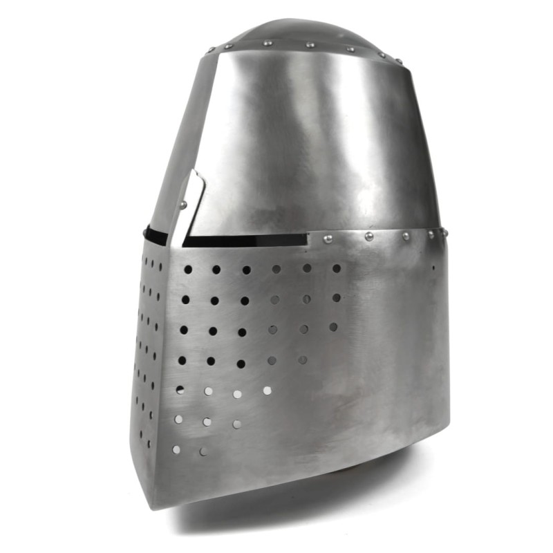 A classic, large, and historically accurate great helmet inspired by the original helmet of Richard Pembridge, combining iconic medieval design with modern durability.