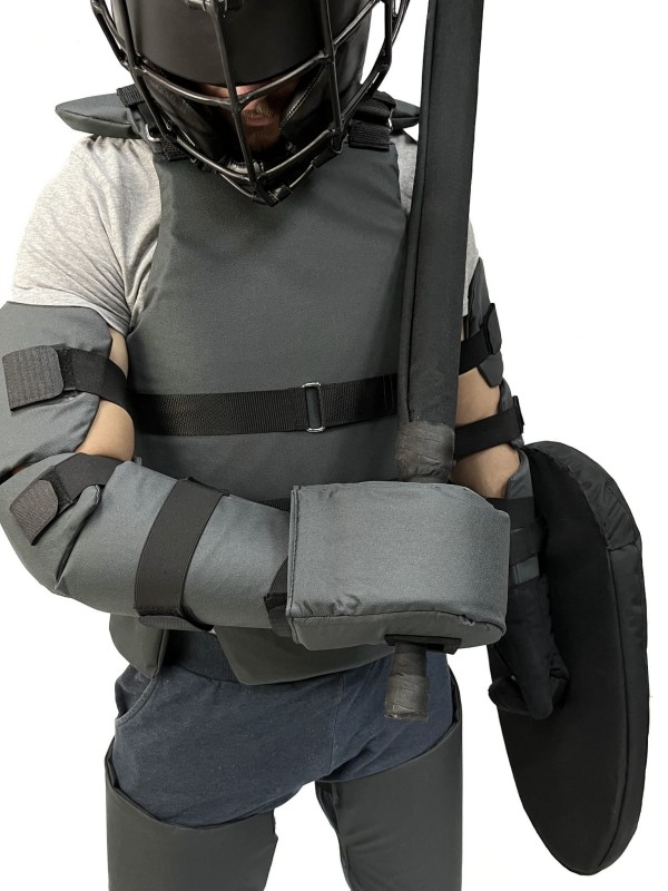 This set includes all essential protective gear and training equipment: