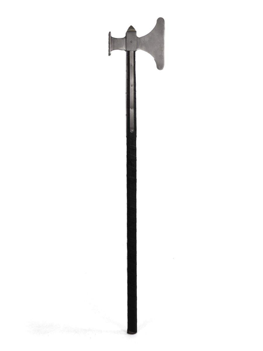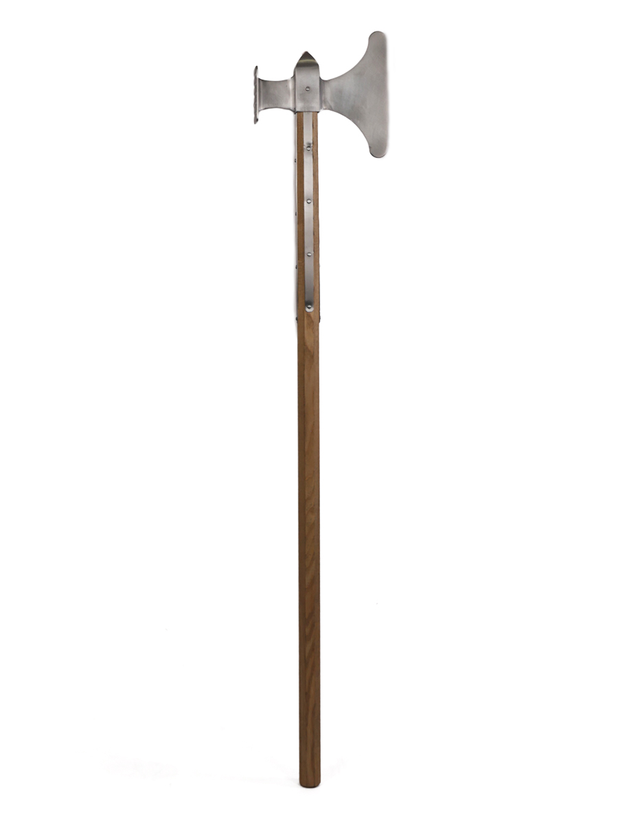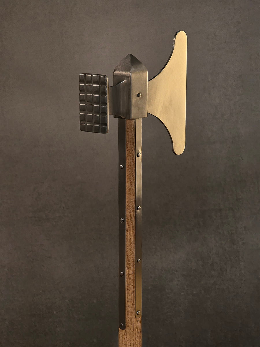 Piękno, styl, skuteczność i wygoda. Tak naszym zdaniem należy opisać ten typ broni. Poprzez posiadanie; młotka, ostrze jest lepiej wyważone, a sam cios głębiej penetruje zbroję. Dodatkowo ta broń posiada walory psychologiczne. Sam przyznaj - poleaxe wygląda bardzo groźnie. Oprawiane są przez nas na jesionowych drzewcach, które przed zanitowaniem są dodatkowo obkręcane przesączonym klejem materiałem.